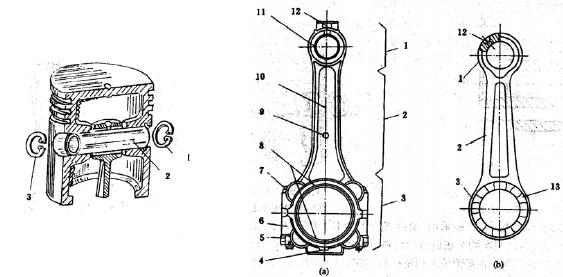 1、 連桿 2、曲軸右部軸頸 3、曲軸銷