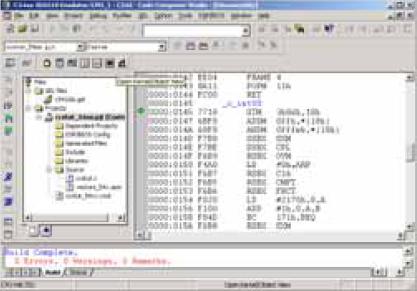 ??? 則如代碼注釋所示,在MATLAB 環(huán)境下完成了對工程文件的調(diào)入、編譯,生成可執(zhí)行文件并將其加載到DSP 目標(biāo)板。利用鼠標(biāo)操作切換到CCS 界面,可以看到在MATLAB 下已經(jīng)完成了對CCS 的各種操作過程,如圖3 所示。