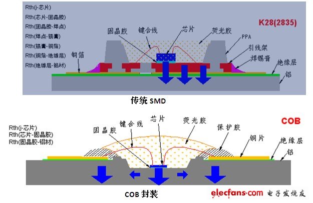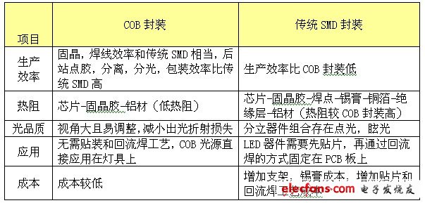 5884 針對(duì)在商業(yè)照明市場LED一直存在著亮度不足,炫光過強(qiáng),光衰嚴(yán)重之問題,因此,商業(yè)照明上LED的運(yùn)用一直為業(yè)主所質(zhì)疑。COB LED與傳統(tǒng)SMD比較,COB提供了低熱阻、組裝容易及光均勻性佳的優(yōu)勢,使其成為目前高功率LED封裝市場的主流趨勢。