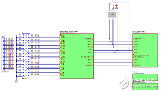 的TIC12400-Q1多開關(guān)檢測(cè)接口(MSDI)僅使用24個(gè)IO引腳電容、5個(gè)去耦電容、用于中斷輸出的單個(gè)電阻以及單個(gè)的MSDI設(shè)備。圖3一對(duì)一比較了用于處理開關(guān)輸入的分立附聚電流、反向阻斷和ESD