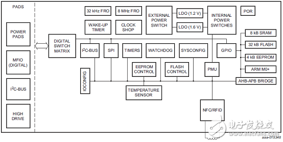 The NXP LPC8N04 is an IC optimized for an entry level Cortex-M0+ MCU with built-in NFC interface. LPC8N04 supports an effective system solution with a minimal number of external components for NFC related applications.
