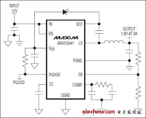 MAX15041 內(nèi)置開關(guān)的同步DC-DC轉(zhuǎn)換器