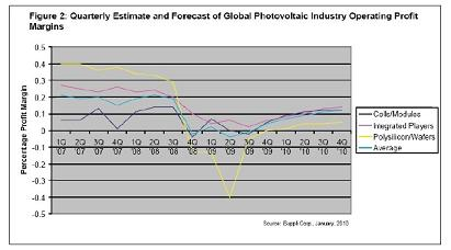 太陽能產(chǎn)業(yè)在2009年證明了具有非常高的循環(huán)性變化,DisplaySearch觀察 14個主要的太陽能電池Cell和模塊制造商的利潤率表