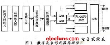 數(shù)字波束形成系統(tǒng)是現(xiàn)代雷達(dá)一個(gè)重要的組成部分。相控陣天線通過它可以實(shí)現(xiàn)自適應(yīng)波束、低旁瓣波束,并通過對移相器、衰減器的控制實(shí)現(xiàn)波束掃描。本文介紹的數(shù)字波束形成
