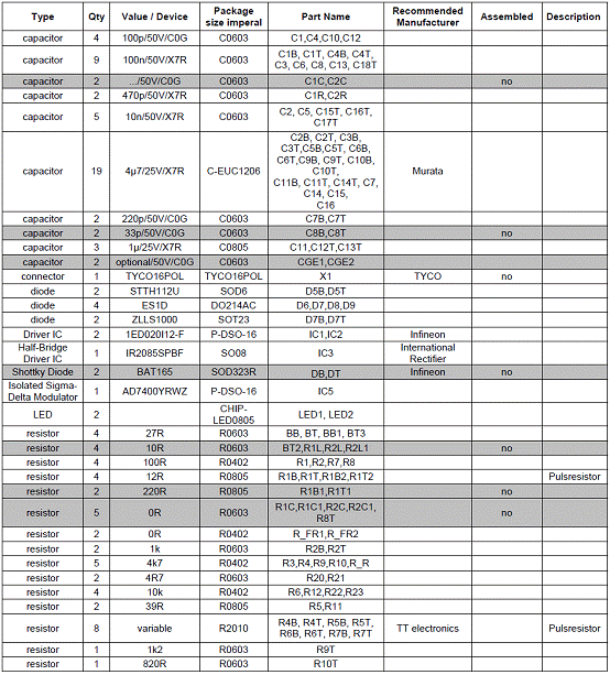 EconoDUAL?3驅(qū)動板材料清單(BOM):