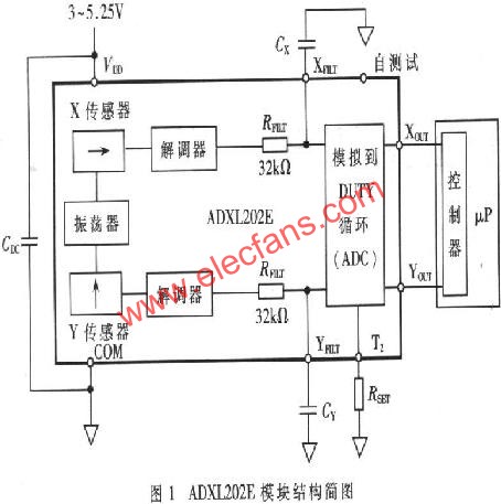 ????? 1.2 ADXL202引腳功能簡(jiǎn)介