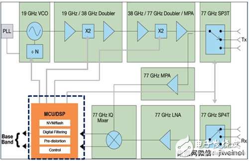 存取車內(nèi)和外部資料的應用程序,帶動了聯(lián)網(wǎng)汽車的發(fā)展,而這些都將需要下世代5G/毫米波技術(shù),將開辟新的使用案例和應用程序。如圖4為下世代5G毫米波之一種范例電路架構(gòu)。