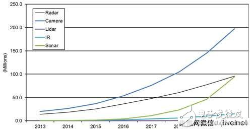 圖2 2013~2020年各類ADAS感測器出貨量分析