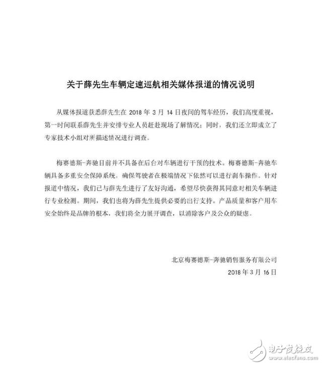 電子發(fā)燒友網(wǎng)>汽車電子>奔馳真的很“奔馳”_奔馳對(duì)定速巡航失控做出的回應(yīng)