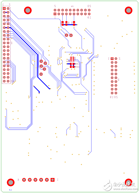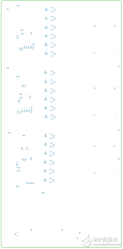 圖14.15通道鋰電池管理模塊BMU數(shù)據(jù)板PCB底層元件布局圖