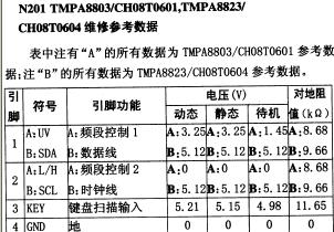 - TMPA8803 CH08T0601引腳功能及電壓資料
