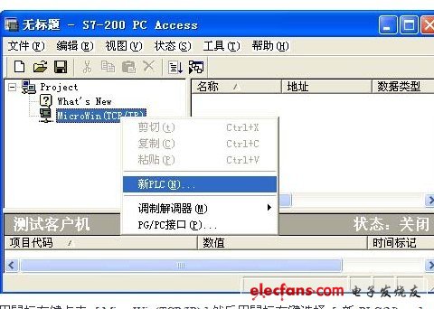 設(shè)置PC_Access, 但是在設(shè)置前一定要先運(yùn)行一次西門子的MicroWin ,在它的設(shè)置PG/PC接口中選擇 [ TCP/IP(Auto)à實(shí)際的網(wǎng)卡名 ],目地是將PC_Access的驅(qū)動(dòng)選為TCP/IP, 之后打開PC_Access,見下圖: