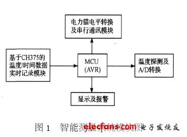 在電工場合中,重要部件的溫度變化是必須密切注意的,一次疏忽都可能引發(fā)事故,造成無可挽回的損失。因此,這些場合一般都裝有具有自動(dòng)報(bào)警功能的測溫系統(tǒng),智能測溫系統(tǒng)還要提供下載接口,以便操作者讀取數(shù)據(jù)并分析事故多發(fā)階段及其誘因,達(dá)到防范于未然。本文介紹了利用USB 接口芯片CH375 在智能測溫系統(tǒng)中保存實(shí)時(shí)數(shù)據(jù)的方法,重點(diǎn)介紹對外接USB 存儲(chǔ)設(shè)備進(jìn)行讀寫的原理和步驟,并提出了一種在資源占用上比芯片廠商提供的文件管理層操作更為優(yōu)化的程序設(shè)計(jì)方法。
