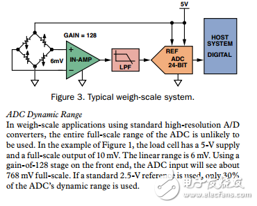 The trend in weigh scales towards higher accuracy and lower cost has produced an increased demand for high-performance analog signal processing at low cost. The scope of this requirement is not obvious; most weigh scales output the final weight value at a resolution of 1:3,000 or 1:10,000, which is easily met (apparently) by a 12-bit to 14-bit ADC (analog-to-digital converter). However, a closer examination of weigh scales shows that meeting the resolution requirement is not that easily accomplished; in fact, the ADC accuracy needs to be closer to 20 bits. In this article, we discuss some of the system specifications of weigh scales and deal with considerations for designing and building a weigh-scale system. The main areas considered are peak-to-peak-noise resolution, A/D-converter dynamic range, gain drift, and filtering. We compare measured data from a real load cell to inputs from a stable voltage reference, using a weigh-scale reference design as an evaluation board.