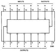 inverters and ten, four-input NAND gates. The inverters are