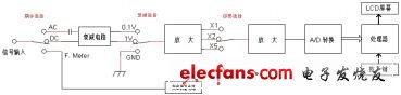 062數(shù)字存儲(chǔ)示波器由模擬通道、A/D轉(zhuǎn)換器、中心處理器,鍵盤(pán)和LCD顯示等部分組成,見(jiàn)圖1.