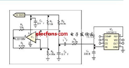 開關(guān)電源可能是眾所周知的噪聲發(fā)生器。您應(yīng)該防止這些被傳導(dǎo)或輻射的噪聲返回輸入源,因?yàn)檫@一噪聲會(huì)給使用同一輸入電源的其他器件造成嚴(yán)重?fù)p壞。電磁干擾濾波器的目標(biāo)是阻止這些噪聲,并提供一條返回噪聲源的低阻抗路徑。這種噪聲越大,濾波器設(shè)計(jì)的規(guī)模、費(fèi)用和難度就越大。固定頻率開關(guān)電源在這一固定基頻上產(chǎn)生最大的電磁干擾輻射,此外,還有在開關(guān)頻率的倍數(shù)上產(chǎn)生電磁干擾輻射,但其幅度(強(qiáng)度)有所減小。圖 1 所示簡(jiǎn)單電路使開關(guān)轉(zhuǎn)換器能在多個(gè)頻率而不是單個(gè)頻率上工作,從而降低了任何一個(gè)頻率上工作的平均時(shí)間。該方案能有效地降低峰值輻射量。
