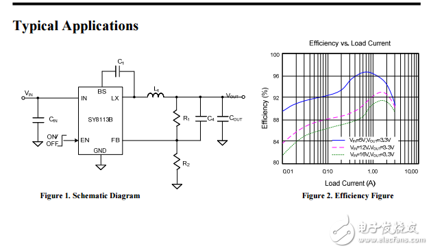 The SY8113B is a high efficiency 500 kHz synchronous step-down DC-DC converter capable of delivering 3A current. The SY8113B operates over a wide input voltage range from 4.5V to 18V and integrates main switch and synchronous switch with very low RDS(ON) to minimize the conduction loss. Low output voltage ripple and small external inductor and capacitor sizes are achieved with 500 kHz switching frequency. It adopts the instant PWM architecture to achieve fast transient responses for high step down applications