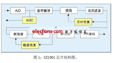 杭州國(guó)芯推出的GX1001系列就是一款頗具特色的DVB-C信道解調(diào)解碼芯片。它集成了10位A/D轉(zhuǎn)換器,采用直接中頻信號(hào)輸入,支持DVB-C下16QAM、32QAM、64QAM、128QAM和256QAM解調(diào);支持可變符號(hào)率信號(hào)(符號(hào)率下限可到0.45MHz,上限根據(jù)外接晶振會(huì)有所不同);由于使用了數(shù)字內(nèi)插原理,所以只需要一個(gè)固定頻率的外部晶振;其優(yōu)化后的載波恢復(fù)和均衡算法可以在大載波頻偏情況下對(duì)抗強(qiáng)烈回波的惡劣信道;具有完全符合DVB-C標(biāo)準(zhǔn)的RS解碼、解交織和MPEG-2 TS流串/并行輸出。可廣泛用于數(shù)字有線電視機(jī)頂盒、調(diào)諧器等方面。