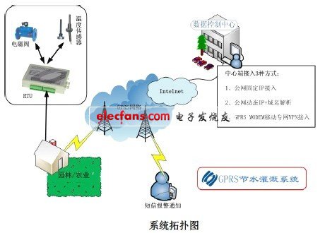 GPRS 農(nóng)業(yè)自動(dòng)化灌溉系統(tǒng)主要由中心主控系統(tǒng)(主計(jì)算機(jī))、GPRS采集控制終端、電磁閥、田間濕度傳感器(可測(cè)土壤濕度絕對(duì)值)、氣象觀測(cè)站(可測(cè)量氣溫、風(fēng)向、風(fēng)速)等設(shè)備所組成。操作人員可坐在控制室里,對(duì)傳上來(lái)的氣象資料、田間土壤濕度等數(shù)據(jù)進(jìn)行綜合分析,利用自動(dòng)方式,足不出戶的對(duì)整個(gè)小區(qū)進(jìn)行灌溉。同時(shí)還可以利用數(shù)據(jù)查詢系統(tǒng)和打印系統(tǒng),隨時(shí)記錄、查詢、打印整個(gè)灌溉小區(qū)的氣象資料、土壤濕度、灌溉設(shè)置、灌溉進(jìn)程、灌水歷史記錄等數(shù)據(jù)。