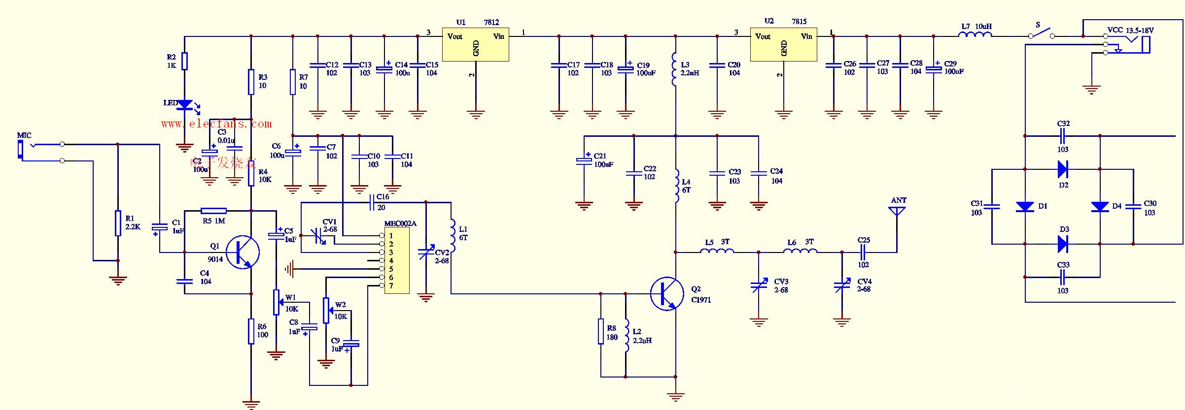 關(guān)鍵字:調(diào)頻發(fā)射電路,調(diào)頻話筒,無線發(fā)射電路,無線發(fā)射器