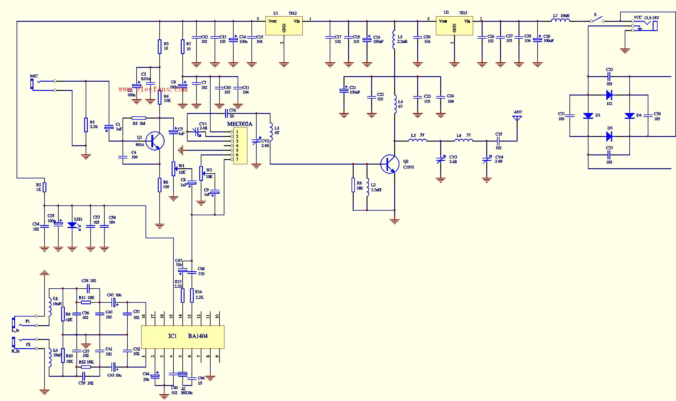 BA1404立體聲調(diào)頻發(fā)射電路(有功放、場強(qiáng)電路)