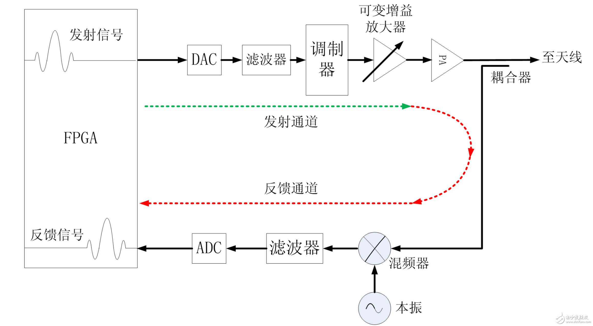 7823 以核心處理板為核心,由信號(hào)源產(chǎn)生的待處理模擬信號(hào)通過(guò)同軸線纜連接到核心處理板的信號(hào)接口,同時(shí),連接同步時(shí)鐘等其他相關(guān)信號(hào)到核心處理板。