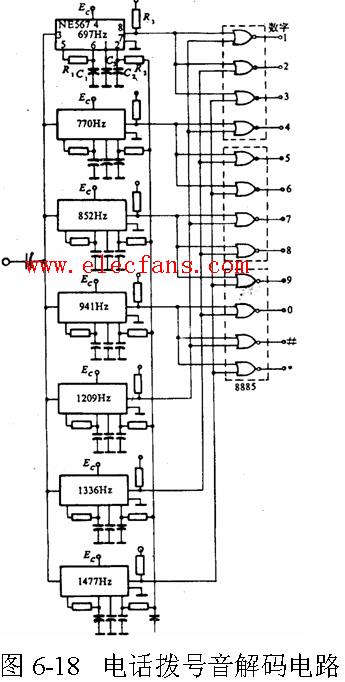 9827 DTMF(Dual Tone Multi Frequency)雙音多頻信號解碼電路是目前在按鍵電話(固定電話、移動電話)、程控交換機及無線通信設備中廣泛應用的集成電路。它包括DTMF發(fā)送器與DTMF接受器,前者主要應用于按鍵電話作雙音頻信號發(fā)送器,發(fā)送一組雙音多頻信號,從而實現(xiàn)音頻撥號。