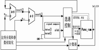 在減法器端,當(dāng)前誤差值e減去eminus,該數(shù)值同時(shí)送給數(shù)值比較器和選通控制模塊。減法器的輸出結(jié)果和0值作比較,如果結(jié)果小于零則記P比特為1;如果結(jié)果大于零則記P比特為0,同時(shí)將減法器的輸出結(jié)構(gòu)作為當(dāng)前加法器的A端輸入值。P比特則在選通控制模塊產(chǎn)生的讀寫(xiě)使能、地址信號(hào)線的驅(qū)動(dòng)下寫(xiě)入Punc_ram。另外用一個(gè)計(jì)數(shù)器來(lái)對(duì)比特?cái)?shù)進(jìn)行記錄,以控制整個(gè)流程的結(jié)束時(shí)刻。系統(tǒng)時(shí)鐘為8倍碼片時(shí)鐘,計(jì)數(shù)器和Punc_ram都采用同步控制,加法器、減法器及比較器都不采用同步時(shí)鐘延時(shí)。