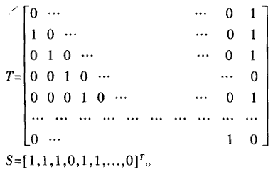 這里所有矩陣運(yùn)算和代數(shù)運(yùn)算中的加號(hào)的語義都是模2加法。為了。設(shè)計(jì)64位并行CRC電路,必須計(jì)算(2)式中的大規(guī)模矩陣乘法T64、T63S等。
