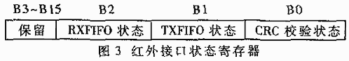 同理使用直通寄存器方式獲取紅外接口狀態(tài)寄存器的狀態(tài)。紅外接口狀態(tài)寄存器結(jié)構(gòu)定義如圖3。