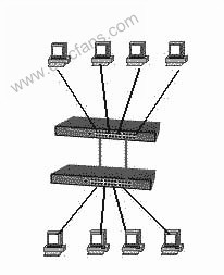 2571 這是最常用的一種組網(wǎng)方式,它通過(guò)交換機(jī)上的級(jí)聯(lián)口(UpLink)進(jìn)行連接。級(jí)聯(lián)可以定義為兩臺(tái)或兩臺(tái)以上的交換機(jī)通過(guò)一定的方式相互連接。根據(jù)需要, 多臺(tái)交換機(jī)可以以多種方式進(jìn)行級(jí)聯(lián)。