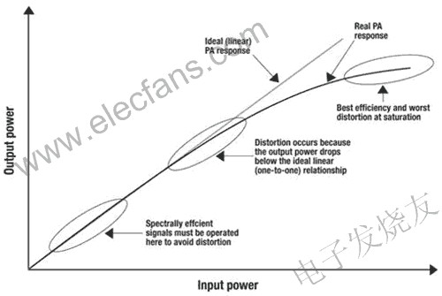 在蜂窩基站中,功率放大器( PA )消耗的電功率比其他任何組件都多,因此就服務(wù)提供商而言,PA是增大運(yùn)營(yíng)支出的一個(gè)重要因素。復(fù)雜的數(shù)字調(diào)制方法要求PA具有極高的線性,因此必須在遠(yuǎn)低于飽和區(qū)的范圍內(nèi)