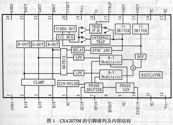 15腳(COUT):色飽和度信號輸出端??沈?qū)動75Ω負載,以用于S端子的C信號輸出。