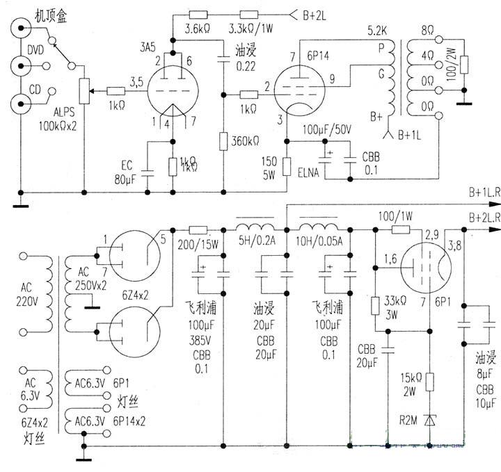 20045 6P3P電子管功率放大器電路,6p3p vacuum tube power amplifier