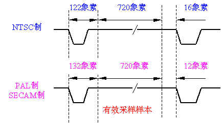(a)不管是PAL制,還是NTSC制電視,Y、R-Y、B-Y三分量的抽樣頻率分別為13.5MHz、6.75MHz、6.75MHz。