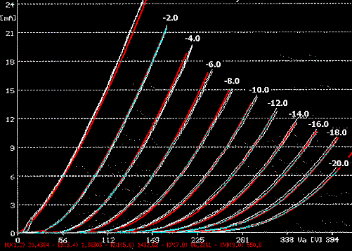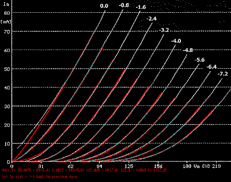 用SPICE模擬的曲線與真實(shí)曲線非常接近,幾乎難以區(qū)分。真實(shí)曲線是用Audiomatica的Sofia vacuum tube curve tracer制作。SPICE電路模擬軟件是免費(fèi)的,有 Unix (Berkeley)平臺的和Windows (WinSpice)平臺的,在Windows 95/NT下也有許多商業(yè)軟件。[原文編者:一個Windows平臺下的圖形化的SPICE模擬軟件的測試版可以從Interface Technologies/MicroSim下載。]
