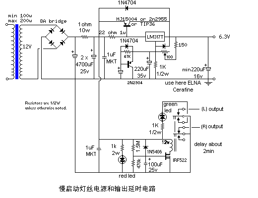 - 圖6是一個“廉價”的版本,用圖7所示的慢啟動燈絲電路,并提供延時。