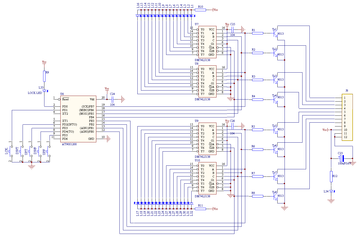 電子分頻前級(jí)放大器部分單片機(jī)控制電路 控制電路的核心是單片機(jī)