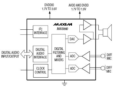 MAX9860 超低功耗單聲道CODEC,提供可編程數(shù)字濾波