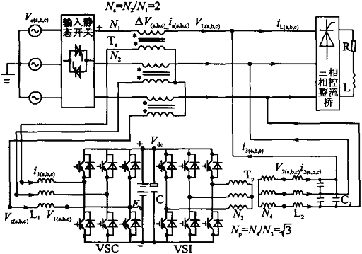 現(xiàn)代工業(yè)的發(fā)展對電能質(zhì)量的要求越來越高,如何為電力用戶提供安全可靠的“綠色”電源是目前電源研究領(lǐng)域的熱點(diǎn)。隨著工業(yè)的發(fā)展,電力用戶對電能質(zhì)量提出了更高的要求,UPS作為一種不間斷供電設(shè)備,是改善電能質(zhì)量的重要措施之一,也是關(guān)鍵設(shè)備得以正常運(yùn)行的重要保證。為適應(yīng)發(fā)展的要求,近年來其也在不斷地進(jìn)行完善和改進(jìn)。先后出現(xiàn)了后備式、在線式、三端口在線互動式及雙變流器串并聯(lián)補(bǔ)償式等幾種結(jié)構(gòu)類型的UPS。其中由Kamran和Silva提出的雙變流器串并聯(lián)補(bǔ)償式UPS,既可以補(bǔ)償非線性負(fù)載中的無功電流及諧波電流,同時還可以補(bǔ)償電源電壓的諧波及基波偏差,較傳統(tǒng)雙變換在線式UPS而言,輸入功率因數(shù)高,輸出能力強(qiáng),具有綜合的電能質(zhì)量調(diào)節(jié)能力,是一種值得推廣應(yīng)用的新型UPS。目前國外UPS廠家只有美國APC公司擁有此項專利技術(shù),在市場上已經(jīng)推出Silcon DP300E系列大功率UPS;國內(nèi)則剛剛處在研究的初始階段,還有許多研究工作需要進(jìn)行。