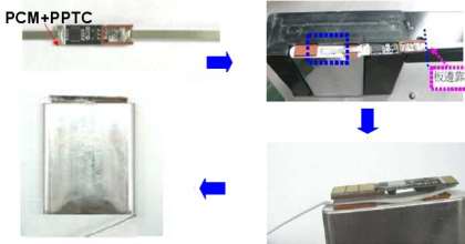 PPTC-自動性保險絲:這里所說的自動性保險絲也就是電熱調(diào)節(jié)器,通常我們稱之為自復(fù)式原件,他會連接電池的正負極或負極,以檢測電池過壓或過熱的現(xiàn)象,當偵測到第一重保護也就是PCM失效時,自復(fù)式原件會自動開啟。