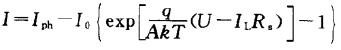 ??當(dāng)負(fù)載電阻RL調(diào)到足夠小時(shí),電池輸出電壓很低,電流表測(cè)出負(fù)載RL上電流即可認(rèn)為是短路電流(Isc);當(dāng)負(fù)載電阻RL調(diào)到足夠大直至斷路,輸出電流等于0,此時(shí)電壓表測(cè)得的電壓即為開(kāi)路電壓(Uoc);若通過(guò)不斷調(diào)節(jié)負(fù)載電阻RL,把光伏電池的輸出的電壓和電流繪制下來(lái)就可得到伏安特性曲線。該項(xiàng)試驗(yàn)曲線可用下式表示〔式中參數(shù)定義同式(2.3))