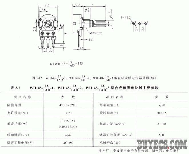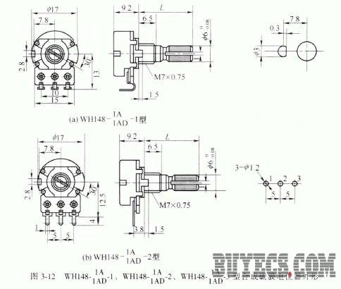 該組電位器的外形如圖3-12 所示,它們的主要參數(shù)見(jiàn)表3-7 。