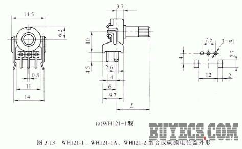 該組電位器的外形如圖3-13 所示,它們的主要參數(shù)見(jiàn)表3-8 。