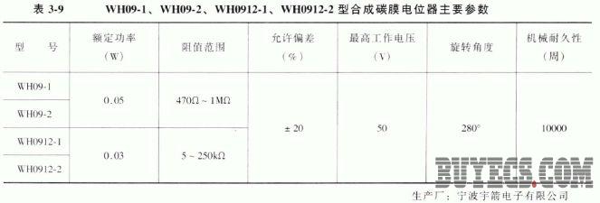 4. WH09-1 , WH09-2 , WH0912-1 、WH0912-2 型合成碳膜電位器