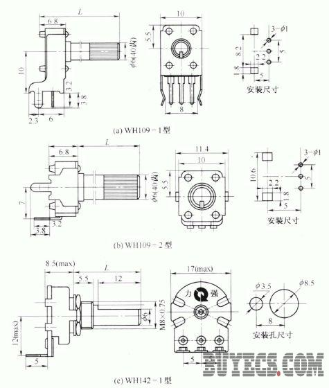 6. WH109-1 、WH109-2 、WH142-1、WH142-3 型合成碳膜電位器