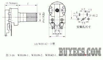 該組電位器的外形如圖3-15 所示,它們的主要參數(shù)見(jiàn)表3-10 。
