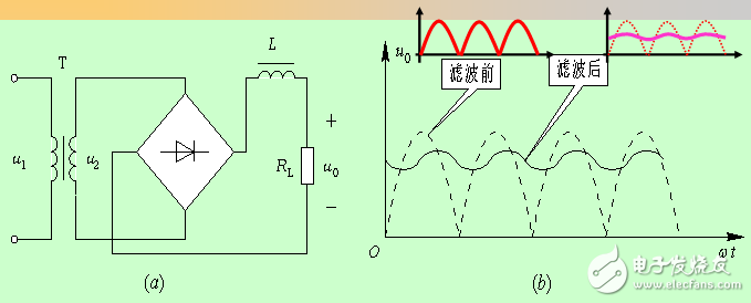 對諧波分量: f 越高,XL 越大,電壓大部分降在XL上。因此,在輸出端得到比較平滑的直流電壓。