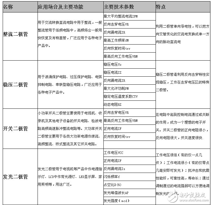 1)二極管承受反向電壓時,加強了PN結(jié)的內(nèi)電場,二極管呈現(xiàn)很大電阻,此時僅有很小的反向電流。如曲線OD段稱為反向截止區(qū),此時電流稱為反向飽和電流。實際應用中,反向電流越小說明二極管的反向電阻越大,反向截止性能越好。一般硅二極管的反向飽和電流在幾十微安以下,鍺二極管則達幾百微安,大功率二極管稍大些。